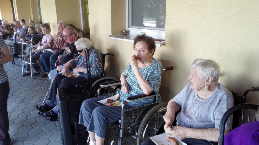 Ako po iné roky aj tohto roku sme si pripomenuli Jána (24.06.2016) tradičnou opekačkou v exteriéroch Zariadenia pre seniorov. Počasie bolo nádherné a to len umocnilo dobrú náladu, ktorá vládla pri opekaní klobásky a spoločnom speve ľudových piesní. Tieto spoločne strávené chvíle na čerstvom vzduchu sú príjemným spestrením hlavne pre klientov Zps, ktorí sú imobilní a výlet na dlhšie vzdialenosti by bol pre nich nemožný. Seniori vítajú tieto vzájomné posedenia a radi ich využívajú na spoločné rozhovory.