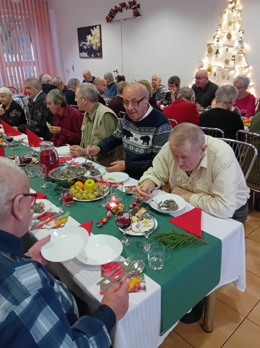 Štedrý deň – jeden deň v roku, keď všetko naokolo stíchne a pripomíname si narodenie Božieho dieťaťa. Naši seniori si v tento deň zasadli k spoločnej štedrovečernej večeri. Na úvod sa im prihovorila riaditeľka Mgr. Katarína Gáliková. Vyzdvihla vzácnosť tejto chvíle, popriala našim seniorom veľa zdravia, šťastia a príjemné prežitie vianočných sviatkov. Krátky príhovor mal aj primátor mesta Ing. Ján Ragan. Miestnosťou sa niesla spoločná modlitba všetkých prítomných. Vianočné koledy, vinše, spoločná slávnostná večera, ktorá všetkým veľmi chutila a balíčky, to všetko umocnilo dobrú náladu počas najkrajších sviatkov v roku – Vianoc.